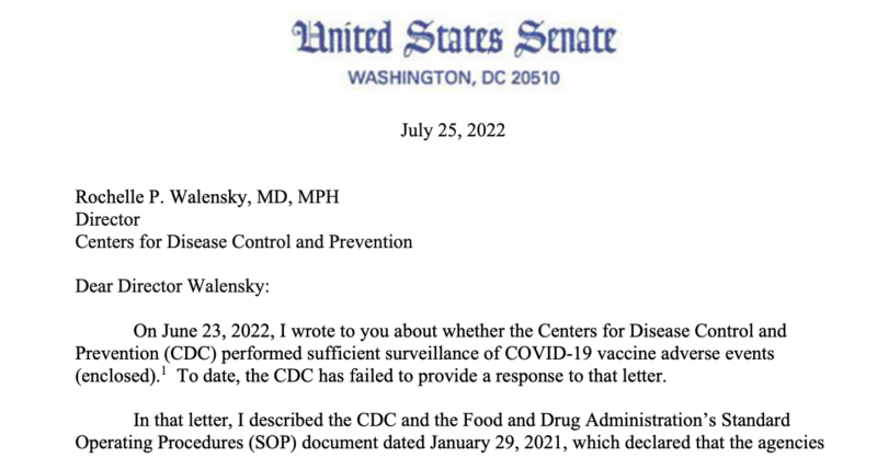 “The American people deserve the truth and you have not been providing it. That is why I, together with millions of Americans, have completely lost faith in the CDC and other federal health agencies. It is time to start regaining their confidence and your agency’s integrity by coming clean, being transparent, and telling the truth,” the senator added.