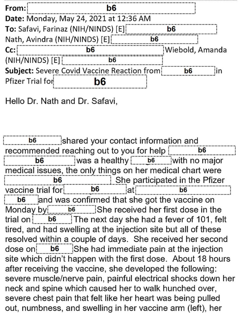 Los documentos también muestran que personas dañadas por vacunas se pusieron en contacto con investigadores de los NIH antes de enero de 2021.