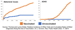 El Doctor Brian Hooker,director científico de “Children’s Health Defense” y coautor de “Vacunados-no vacunados: Que hable la ciencia”(“Vax-Unvax: Let the Science Speak”),,” citó un estudio que realizó con Neil Miller en 2021, según el cual niños totalmente vacunados tenían 20,8 veces más probabilidades de ser diagnosticados de TDA/TDAH en comparación con sus homólogos no vacunados.