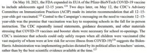 Later, when the FDA approved the vax for 12 to 15-year-old kids, the PR firm told parents that schools could open in fall 2021 only if they got their kids vaccinated. These ads never mentioned side effects like myocarditis due to the vax.