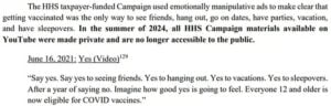 HHS has scrubbed the propaganda ads from this era from its web pages. It’s easy to see why. They are embarrassing. They tell kids, in effect, that they should treat other kids like biohazards unless they are vaccinated.