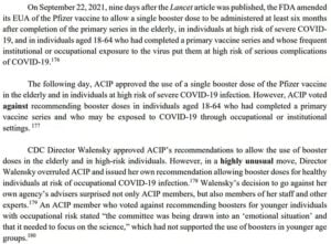 In September 2021, Walensky overruled the agency’s external experts to recommend the booster to all adults rather than just the elderly. The director’s action was “highly unusual” and went beyond the FDA’s approval of the booster for only the elderly.