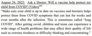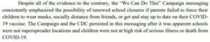 In the absence of evidence, the propaganda campaign ran ads telling parents that the vaccine would prevent their kids from getting Long COVID.
