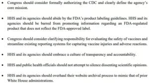 The report makes several recommendations, including formally defining the CDC’s core mission to focus on disease prevention, forcing HHS propaganda to abide by the FDA’s product labeling rules, and revamping the process of evaluating vaccine safety.