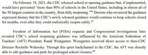 In 2021, former CDC director, Rochelle Walensky rewrote CDC guidance on social distancing at the behest of the national teachers’ union, guaranteeing that schools would remain closed to in-person learning for many months.