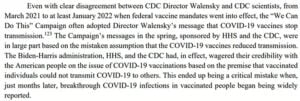 In 2021, to support the Biden/Harris administration’s push for vax mandates, the PR firm pushed the false idea that the vax stopped COVID-19 transmission. When people started getting “breakthrough” infections, public trust in public health collapsed.