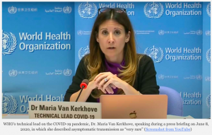 En una conferencia de prensa el 8 de junio, la directora técnica de la OMS sobre su respuesta al coronavirus, la Dra. Maria Van Kerkhove, declaró que los datos disponibles indicaban que “todavía parece raro que una persona asintomática transmita realmente a un individuo secundario”.