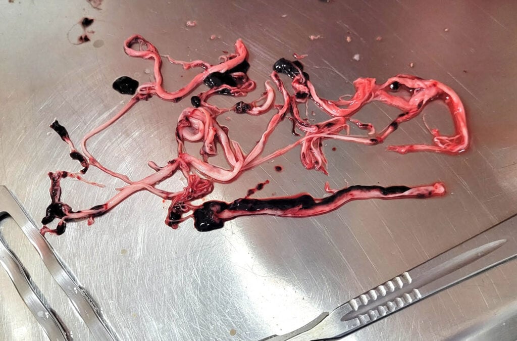 “[En] los coágulos postmortem … se puede ver casi un patrón de capas y se puede decir que la coagulación se produjo cuando el cuerpo se estaba enfriando y todas esas proteínas se estaban coagulando”, dijo Cole. “Casi parecen los anillos de un árbol”.