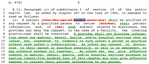Esta eliminación sugiere que un menor de cualquier edad ya no “podrá” sino que “deberá ser notificado de cualquier solicitud de una persona cualificada para revisar la información de su paciente” y denegar el acceso a la misma si así lo desea.
