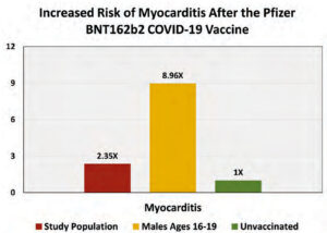 Une étude israélienne de septembre 2022 a révélé que l’incidence de la myocardite dans les 30 jours suivant la deuxième injection de Pfizer était 2,35 fois plus élevée que chez les personnes non vaccinées, le risque pour les hommes âgés de 16 à 19 ans s’élevant à près de 1 sur 1 000.