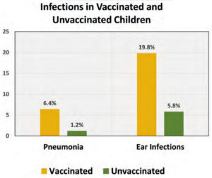 Dans leur livre “Vax-Unvax : Let the Science Speak“, Brian Hooker, directeur principal de la science et de la recherche au CHD, et Robert F. Kennedy Jr, président du CHD en congé, ont partagé les données d’une étude montrant que les enfants vaccinés courent cinq fois plus de risques de souffrir d’une pneumonie que les enfants non vaccinés.