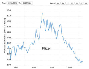 Durante el mismo periodo de cuatro años, muchas empresas farmacéuticas y tecnológicas también vieron dispararse sus beneficios, aunque algunas empresas como Pfizer y Moderna han visto desde entonces cómo sus valores han vuelto a bajar a tierra estrepitosamente.