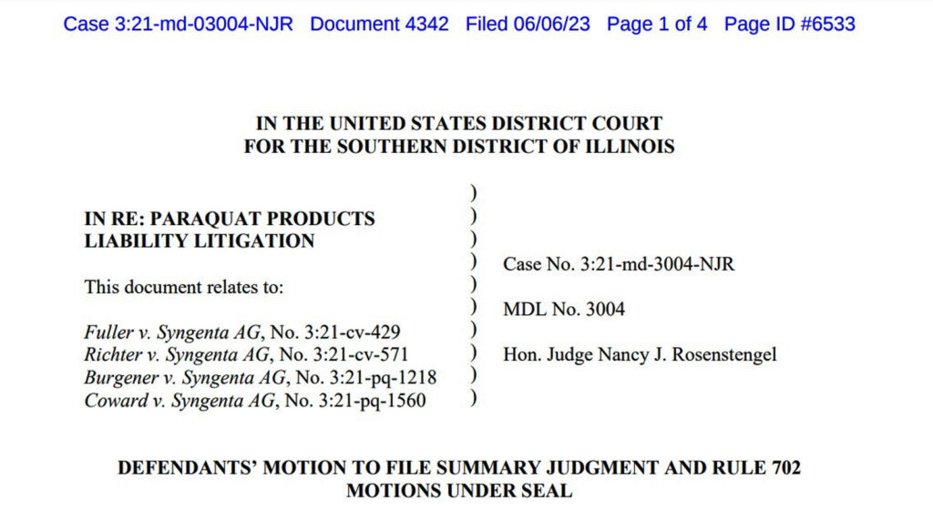 On Wednesday, Syngenta and lawyers for the plaintiffs in the case filed a flurry of pleadings in the multidistrict litigation docket overseen by Chief Judge Nancy J. Rosenstengel within the U.S. District Court for the Southern District of Illinois.