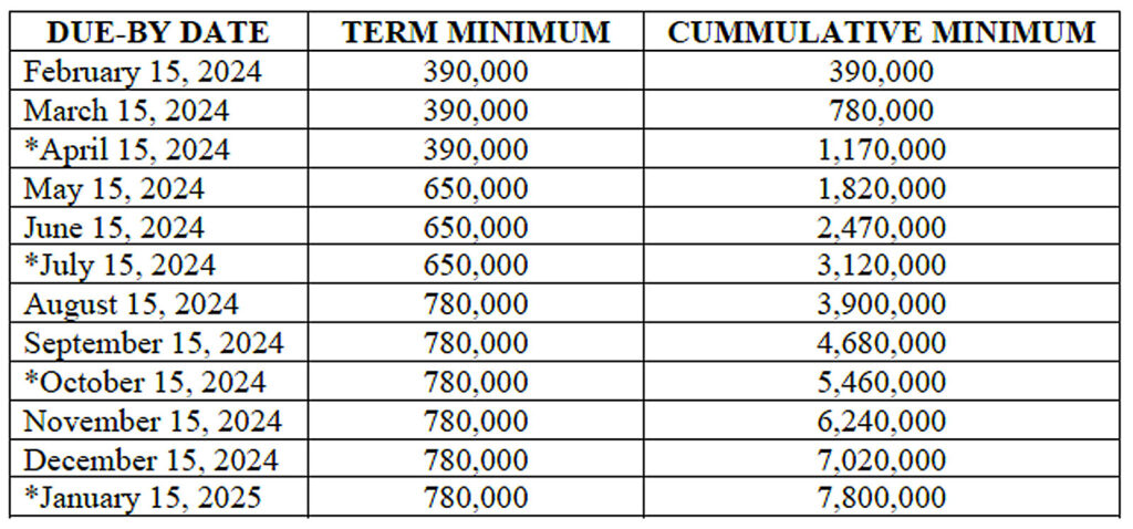 La orden judicial ordenaba la publicación del primer tramo de al menos 390.000 envíos individuales de texto libre V-safe antes del 15 de febrero de 2024, y el resto en un calendario mensual, hasta el 15 de enero de 2025.