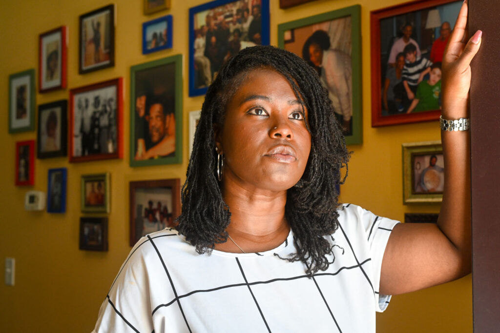 Charity Watkins’ health took a bad turn in the weeks after her daughter was born. Her doctor blamed postpartum depression and then the flu. Those misdiagnoses put Watkins’ life at risk; she actually had heart failure. Photo credit: Kate Medley for KFF Health News.