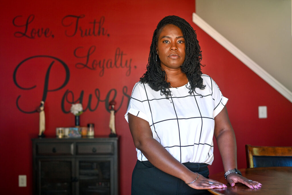 Charity Watkins experienced deep exhaustion for weeks after giving birth to her daughter. Her doctor thought she was depressed. She had undiagnosed heart failure. Photo credit: Kate Medley for KFF Health News.