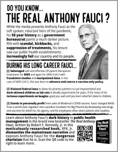 Share the promotional video below of The Real Anthony Fauci, by Robert F. Kennedy Jr. – view it on Rumble and use the blue “share” button in the upper right.
