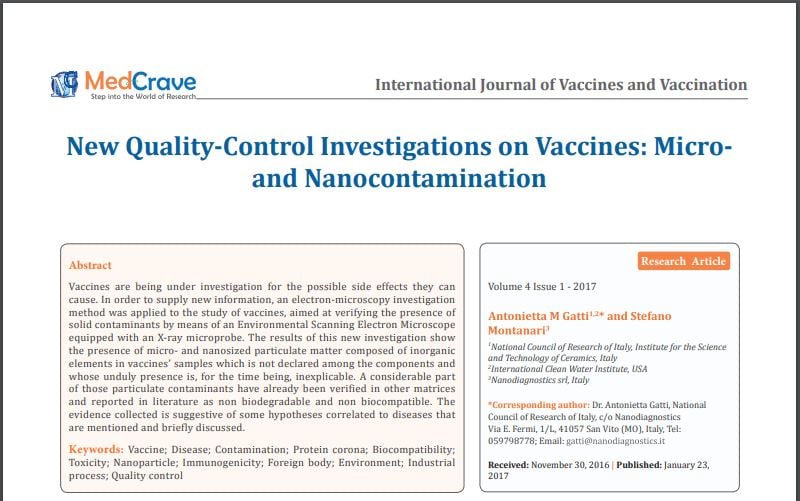 When the scientists published their findings in January 2017, New Quality‐Control Investigations on Vaccines: Micro‐ and Nanocontamination, the logical next step for the World Health Organization (WHO) and the Centers for Disease Control (CDC) should have been to open an investigation into their claims, hire independent scientists to run their own lab tests to confirm or refute the findings. If confirmed, then the healthcare agencies would enact new policies on safety of the vaccine supply chain, and enforce strict quality control and quality assurance programs.