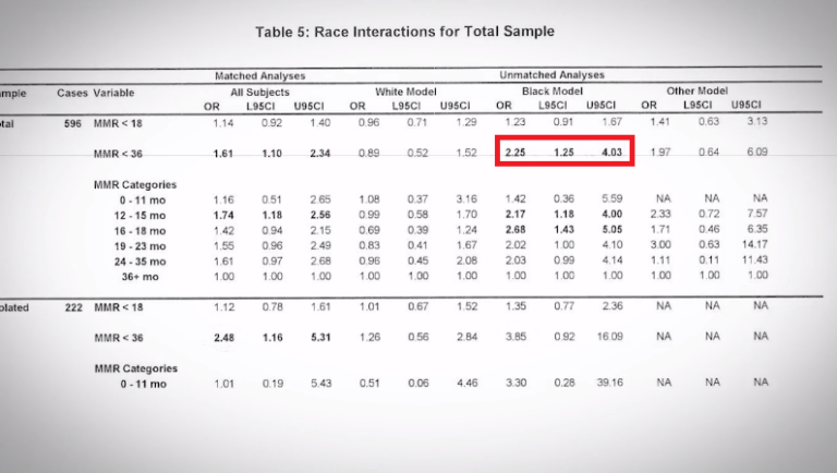 When CDC scientists did find a statistically significant causal relationship between MMR and autism in African American boys, according to Dr. Thompson’s eyewitness account, CDC removed 260 black baby boys from the dataset and destroyed the data. The analysis in the published report in Pediatrics misrepresents the risk of having eliminated data from the dataset. That constitutes fraud.